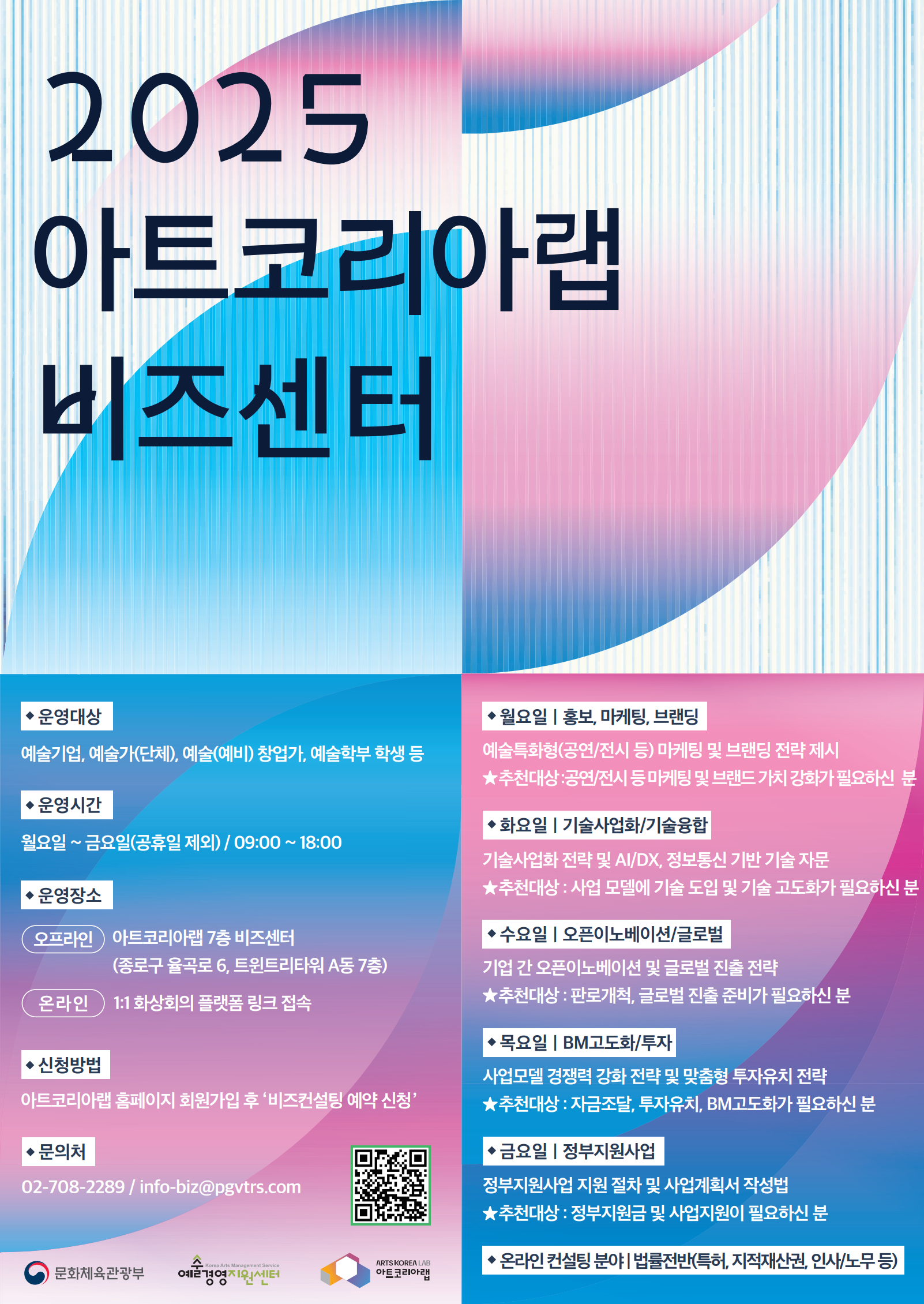 ✅ 신청방법 : 아트코리아랩 홈페이지 회원가입후 '비즈컨설팅 예약신청' (접수시 상담희망 내용은 상세히 기재 부탁드립니다)