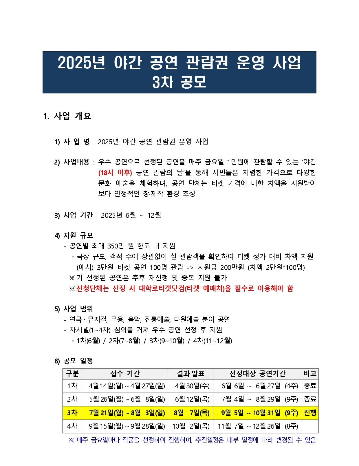 (사)한국소극장협회는 지난해에 이어 서울시가 주최하는 '2025년 야간 공연 관람권 운영' 사업을 주관·운영하고 있습니다.